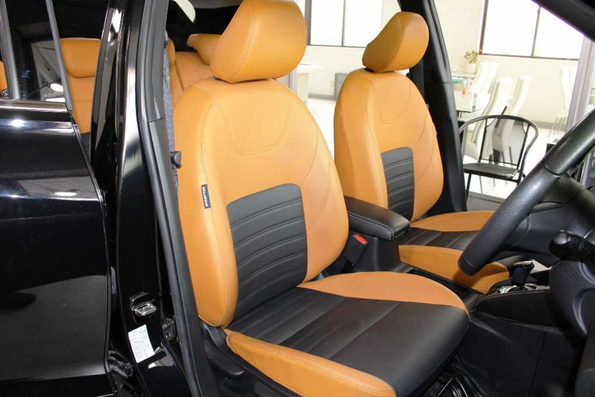 ハーフレザー シートの一部分が革張りになっています。