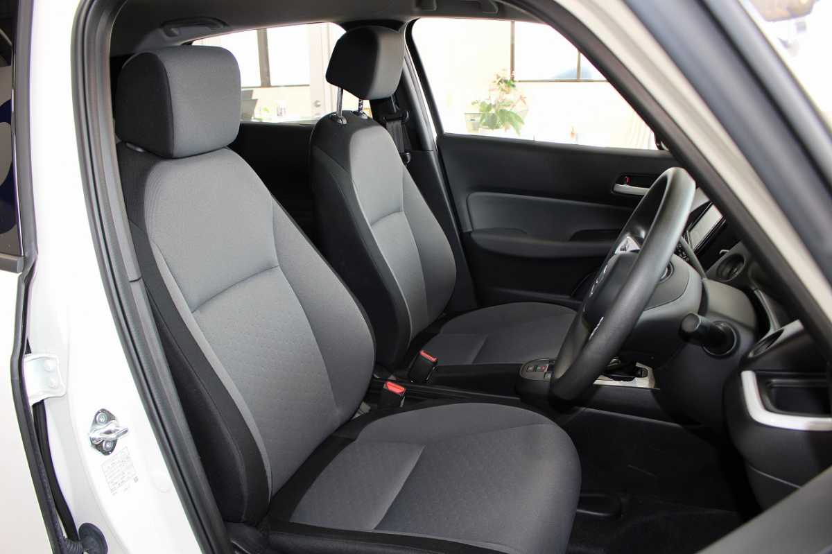 ベンチシート 前席シートが完全には独立しておらず、長椅子状につながって見える構造になっています。