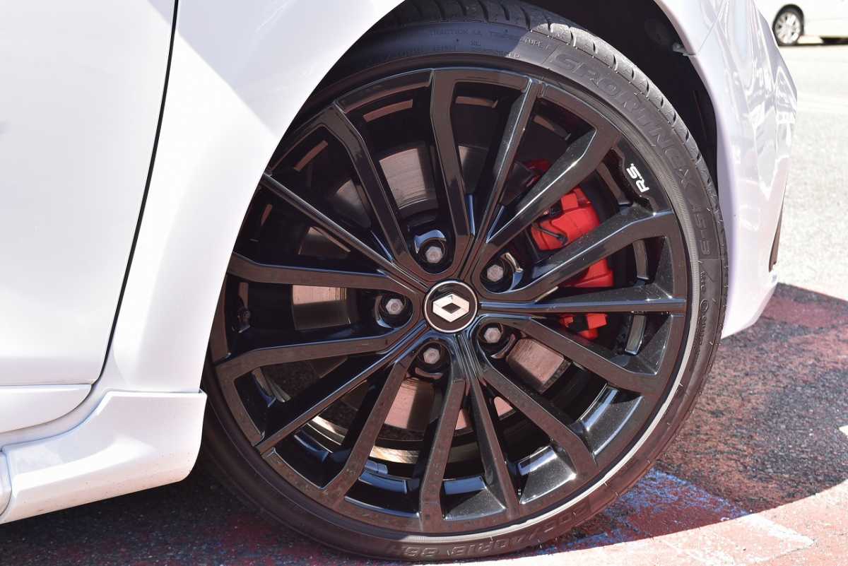 純正アルミ メーカーで販売しているアルミホイールが装着されています。