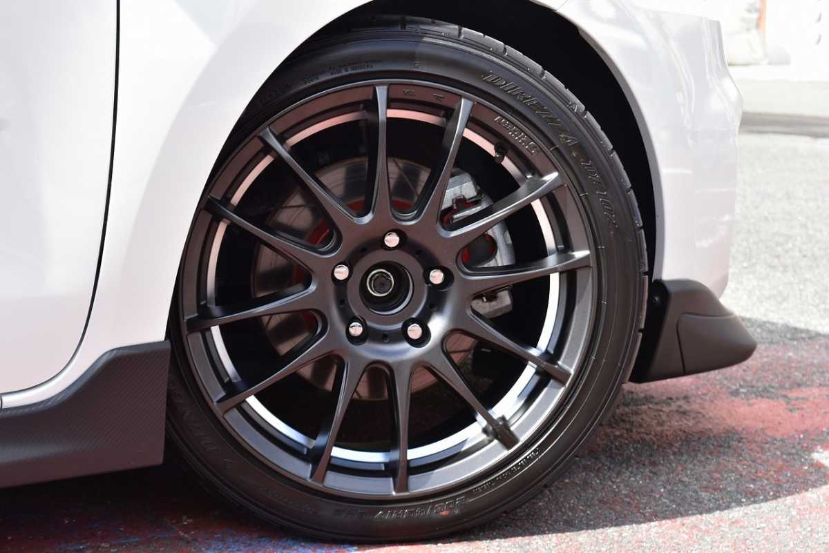 純正アルミ メーカーで販売しているアルミホイールが装着されています。