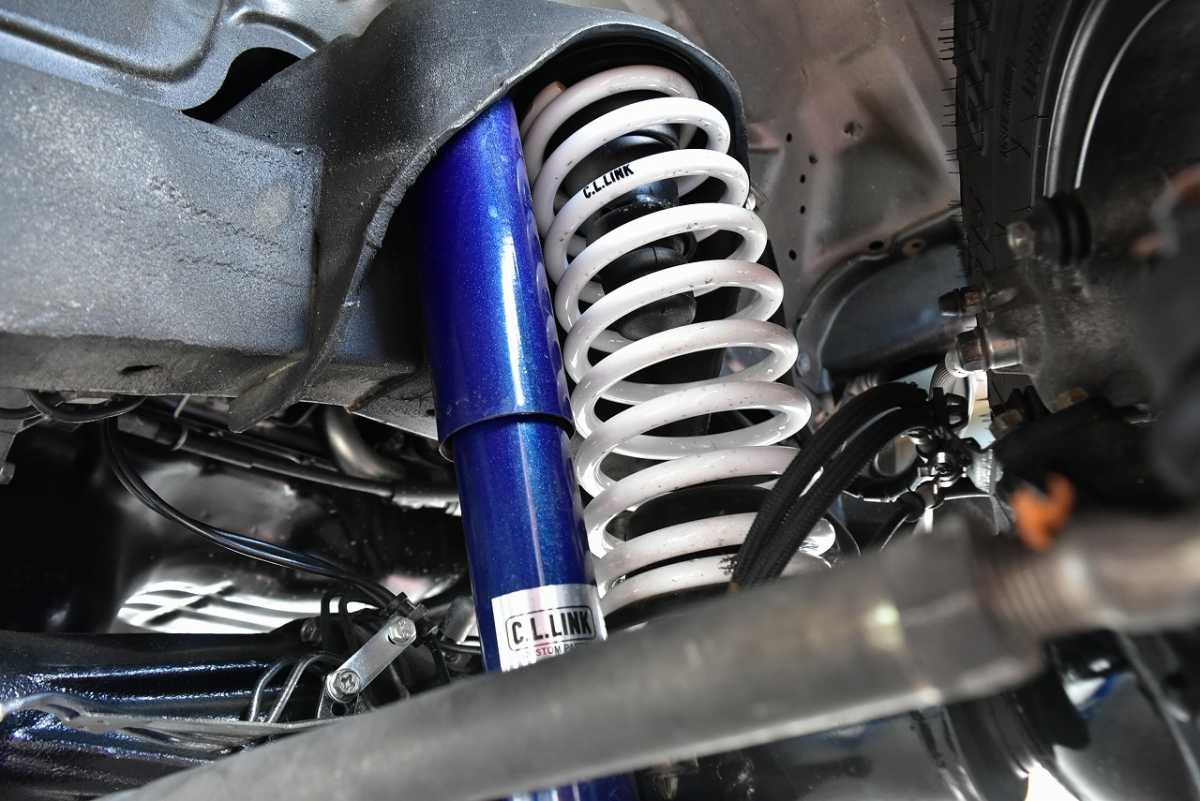 エアサスペンション 走行中の振動を吸収するサスペンションに、金属スプリングの代わりに圧縮空気を採用したものが装備されています。