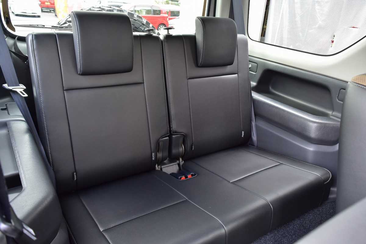 ベンチシート 前席シートが完全には独立しておらず、長椅子状につながって見える構造になっています。