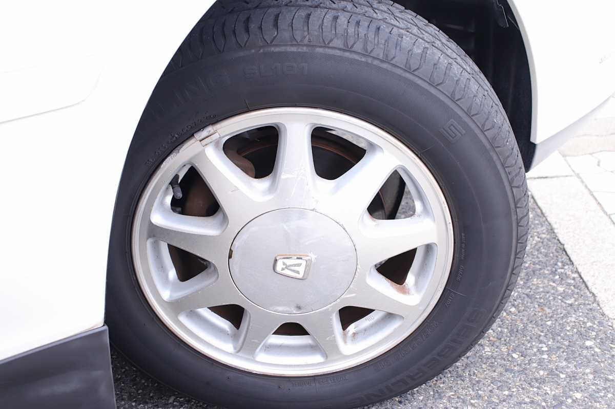 純正アルミ メーカーで販売しているアルミホイールが装着されています。
