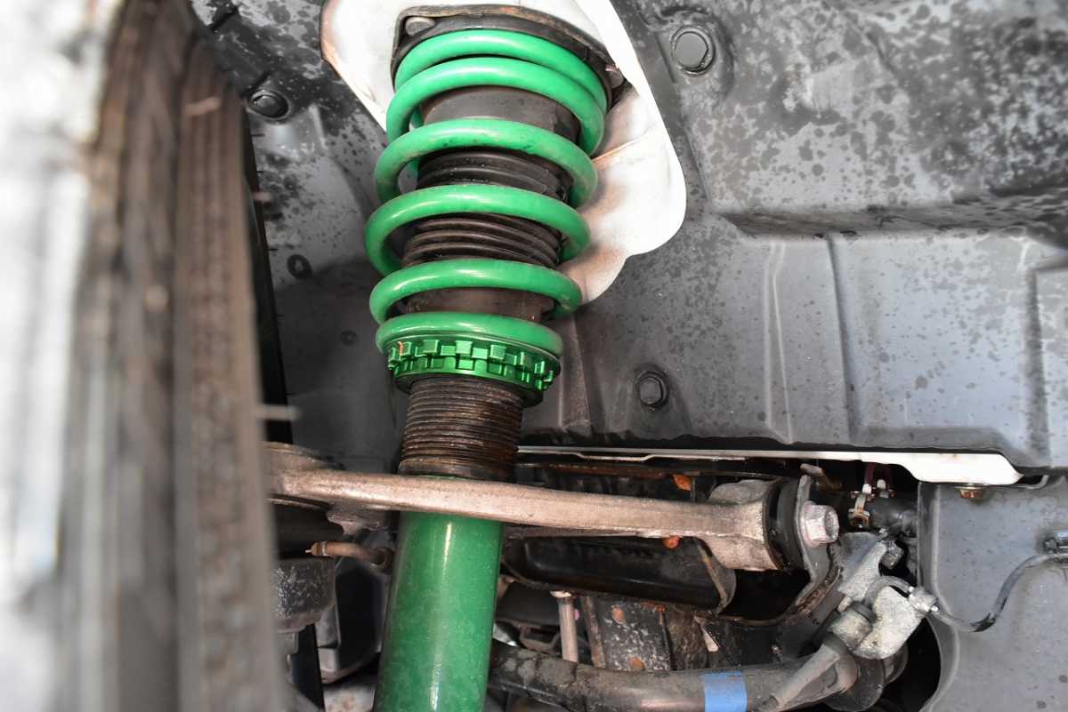 エアサスペンション 走行中の振動を吸収するサスペンションに、金属スプリングの代わりに圧縮空気を採用したものが装備されています。