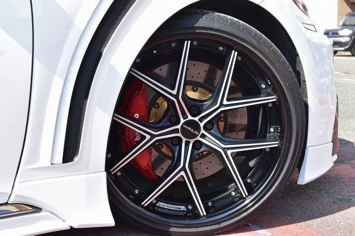 純正アルミ メーカーで販売しているアルミホイールが装着されています。