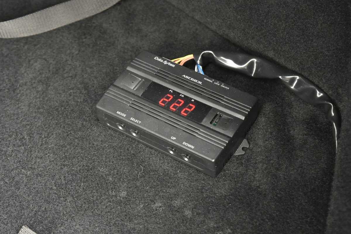 エアサスペンション 走行中の振動を吸収するサスペンションに、金属スプリングの代わりに圧縮空気を採用したものが装備されています。