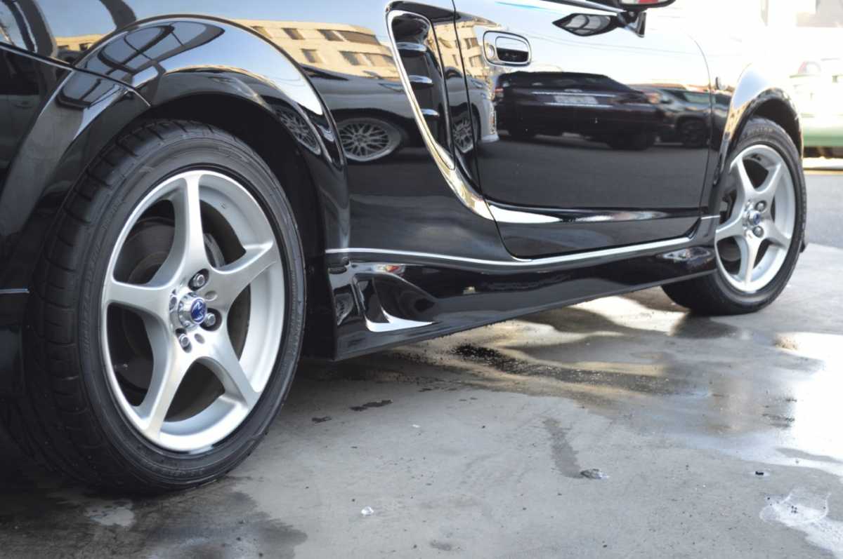 フルエアロ フロントスポイラー、リアスポイラー、サイドステップというエアロパーツ3点が揃って装備されています。