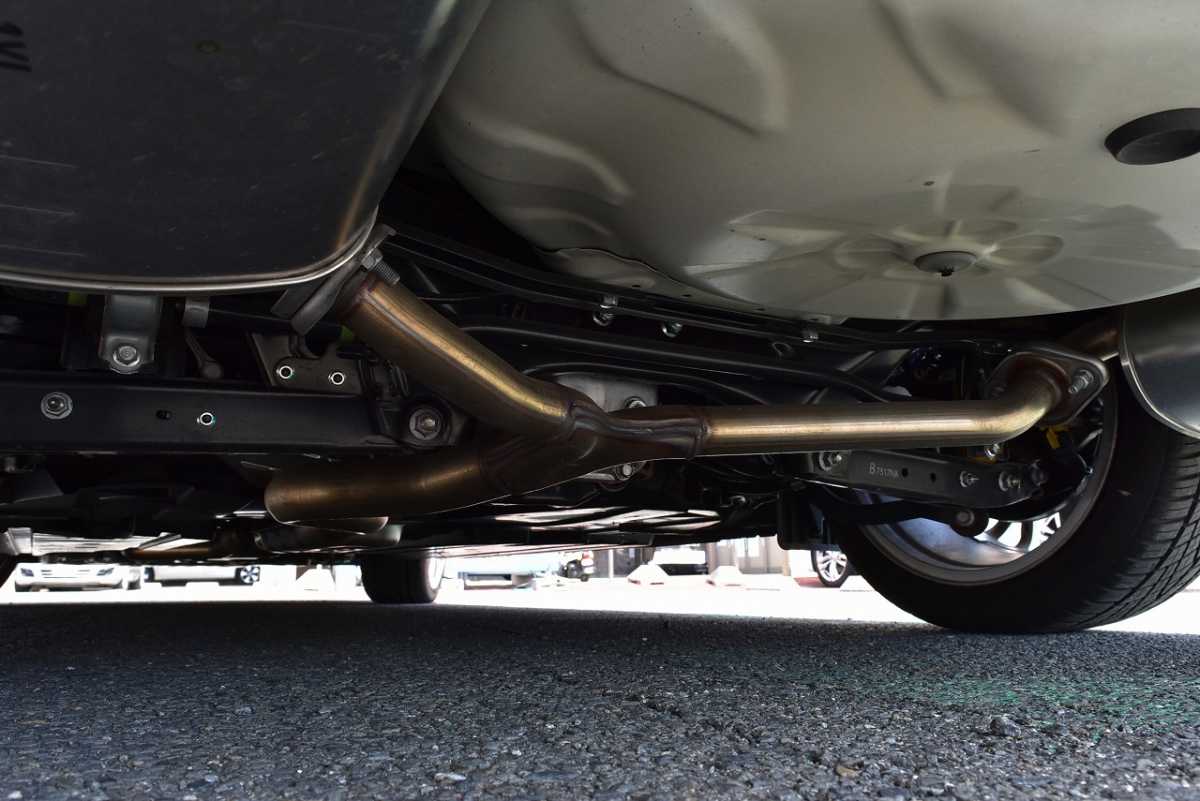 マフラー 排気音を小さくするための消音器が装着されています。