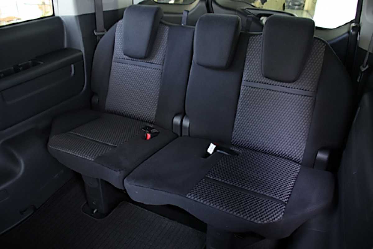 ベンチシート 前席シートが完全には独立しておらず、長椅子状につながって見える構造になっています。