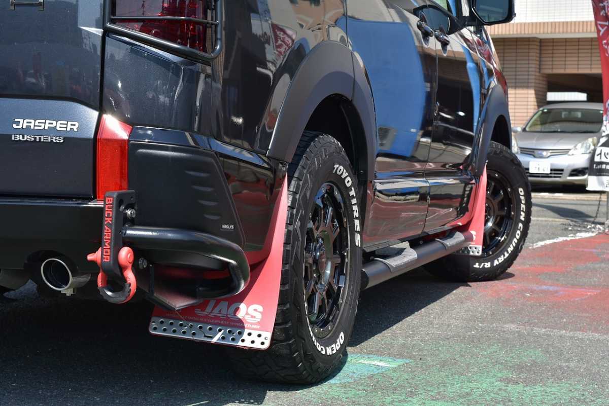 フルエアロ フロントスポイラー、リアスポイラー、サイドステップというエアロパーツ3点が揃って装備されています。