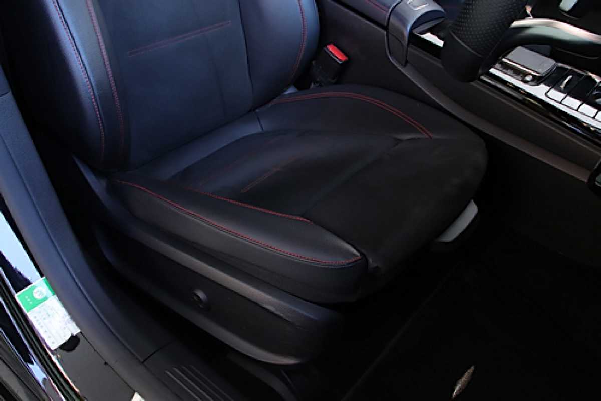ハーフレザー シートの一部分が革張りになっています。
